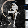 Description: two images of Phos from the manga Houseki no Kuni, with one blending into the other & a crescent moon in the background