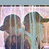 Description: Benson and Randy, one in front of the other, with a powder blue texture that trails down like liquid over them both